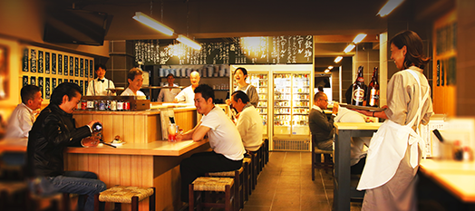 「ワイワイガヤガヤ」の世界観を表現し、老若男女までがボーダレスに分け隔てなく一緒になって楽しめる空間づくりとサービスを提供し「お隣さんが近くに感じる」コミュニケーションの場を創出。